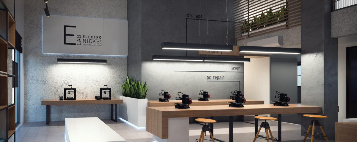 For this project, our architectural team was tasked with designing a modern, technology-focused space dedicated to electronics repair and 3D printing services. The goal was to create an environment that conveys precision, innovation, and high aesthetics, reflecting the company’s philosophy centered around technology and creativity.