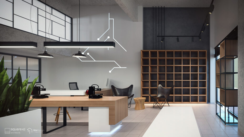 For this project, our architectural team was tasked with designing a modern, technology-focused space dedicated to electronics repair and 3D printing services. The goal was to create an environment that conveys precision, innovation, and high aesthetics, reflecting the company’s philosophy centered around technology and creativity.